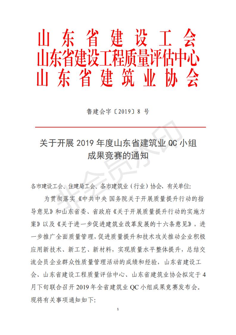 關(guān)于開展2019年度 山東省建筑業(yè)QC小組成果競賽的通知