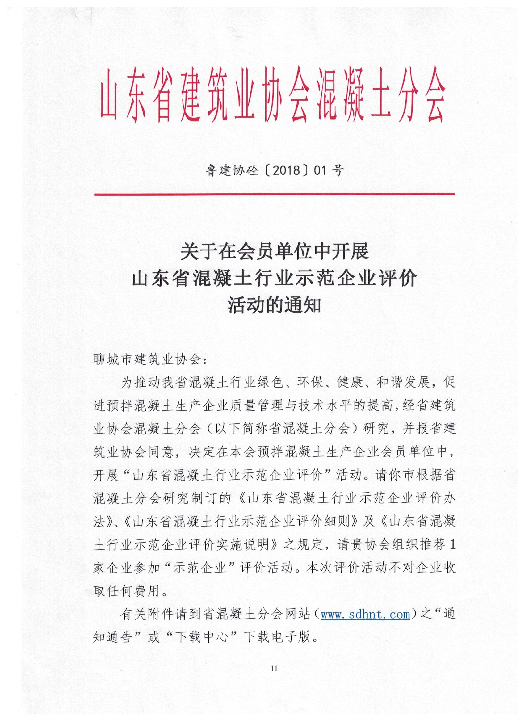各會(huì)員單位: 山東省建筑業(yè)系會(huì)混凝土分會(huì)正在開展“山東省混凝土行業(yè)示范企業(yè)評(píng)價(jià)”活動(dòng),聊建協(xié)將推薦我市企業(yè)參加“示范企業(yè)”評(píng)選。這將對(duì)我市預(yù)拌混凝土生產(chǎn)企業(yè)質(zhì)量管理和技術(shù)水平的提高起到極大的促進(jìn)作用,且獲得“示范企業(yè)”的單位,將具備推薦參評(píng)“中國(guó)混凝土行業(yè)優(yōu)秀企業(yè)”的基本條件?,F(xiàn)將具體參選條件和其他事項(xiàng)公布如下,望達(dá)到標(biāo)準(zhǔn)的企業(yè)積極申報(bào),擇優(yōu)推薦。 一、我市建筑業(yè)協(xié)會(huì)會(huì)員; 二、企業(yè)須為省混凝土分會(huì)3A級(jí)以上的“信用企業(yè)”; 三、通過(guò)GB/T19001-2008(ISO9001-2008)質(zhì)量體系認(rèn)證,評(píng)價(jià)單位與認(rèn)證單位名稱一致,證書在有效期內(nèi)。 四、申報(bào)企業(yè)必須對(duì)申報(bào)材料的真實(shí)、有效性負(fù)責(zé)。凡因提供虛假材料、證明或證書而騙取“示范企業(yè)”榮譽(yù)的,一經(jīng)查實(shí),省混凝土分會(huì)將對(duì)其通報(bào)批評(píng),并取消參加下屆評(píng)價(jià)資格。同時(shí),由市建協(xié)負(fù)責(zé)將其“示范企業(yè)”證書、牌匾收回,取消其稱號(hào)。