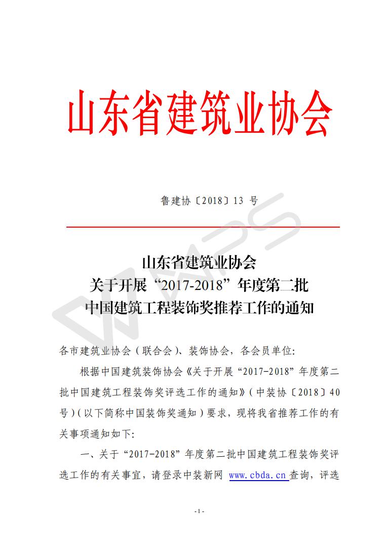 關于開展2017-2018年度第二批中國建筑工程裝飾獎推薦工作的通知